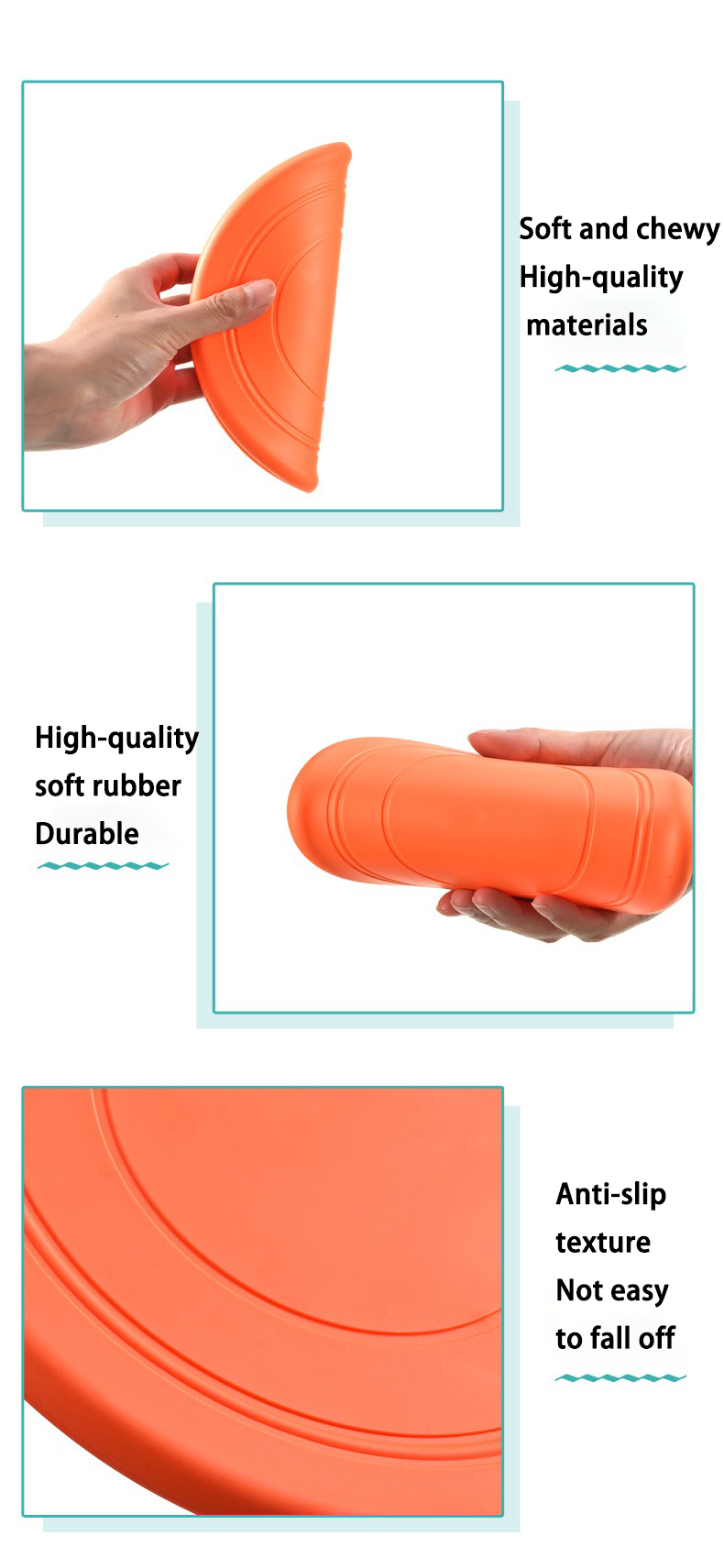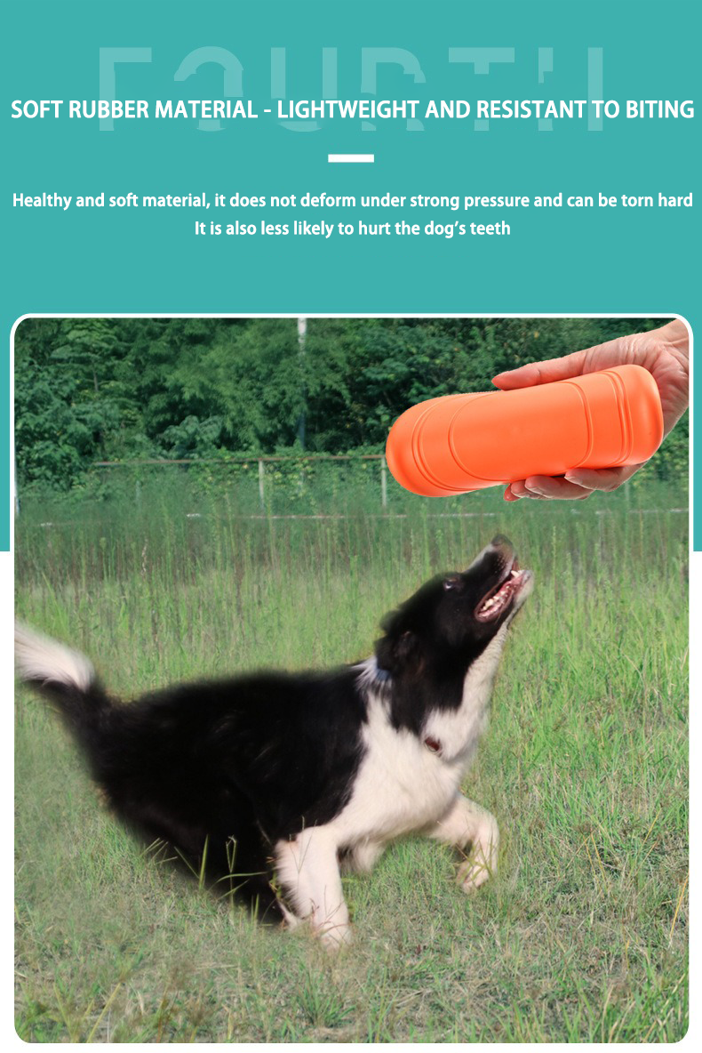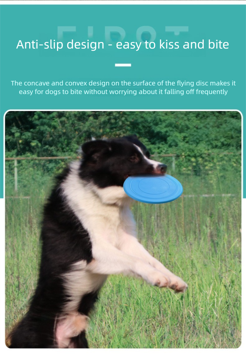 "TPR soft rubber frisbee, throw and play immediately!" "Pet Fly" adopts an integrated molding design and can be used directly after opening the box. The soft TPR material can be folded at any time and easily stored in a bag. You can play with it freely both outdoors and indoors. Your dog will go crazy at first sight!